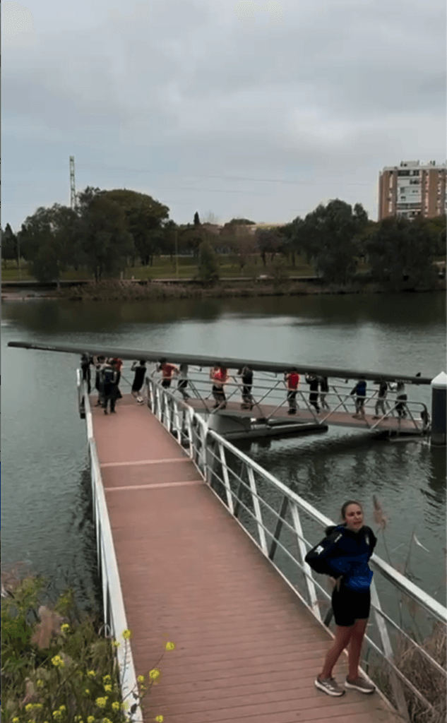 Alternamos al tipo de barco que nos subimos (couple/punta), cambiando los grupos. Salimos a navegar, esta vez aprovechando el máximo tiempo en el agua, proponiéndonos llegar hasta el puente del alamillo.