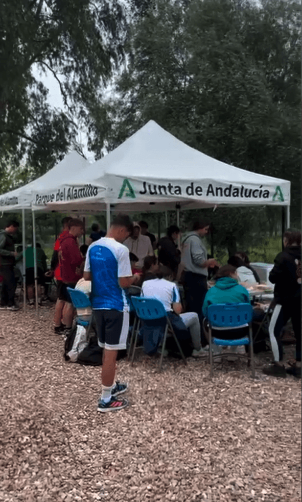 Una vez llegamos allí recogimos todas las embarcaciones y remos. Montamos una carpa, con mesas y sillas, y cada uno sacó lo que trajo de comer. Estuvimos comiendo todos juntos allí en el club, con buena música en convivencia para finalizar la unidad didáctica y el día.